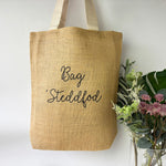 Bag lan y môr oelcloth Cymreig, carthen llwyd